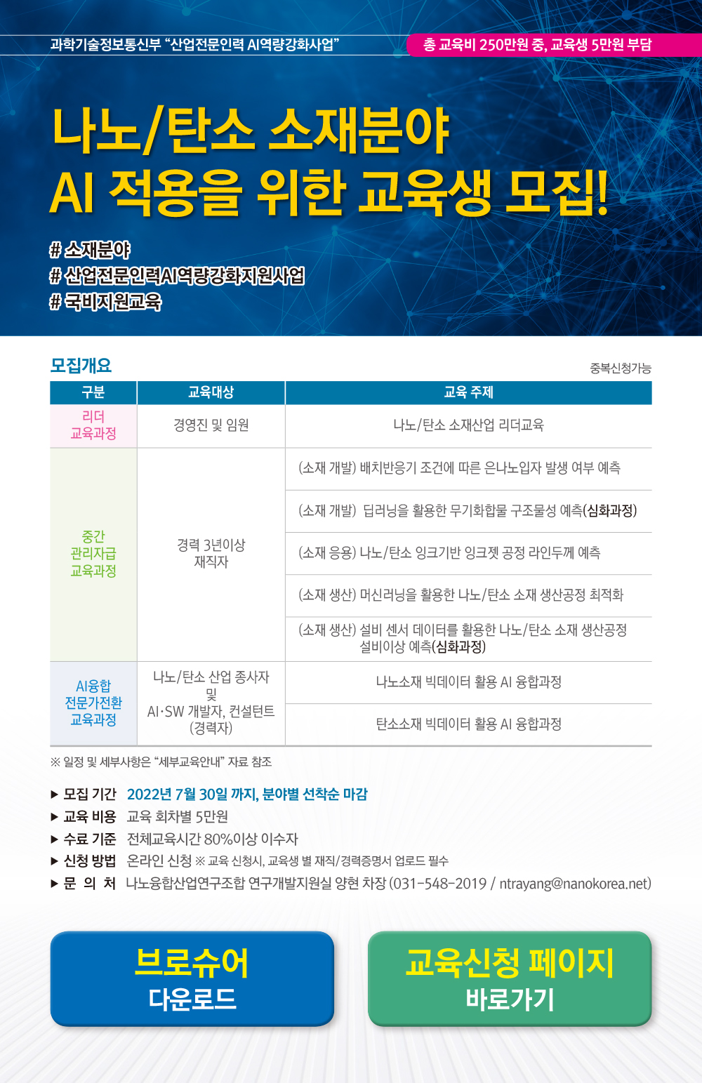 나노/탄소 소재분야 산업전문인력 AI 역량강화 지원사업 교육생 모집 (~7/30)