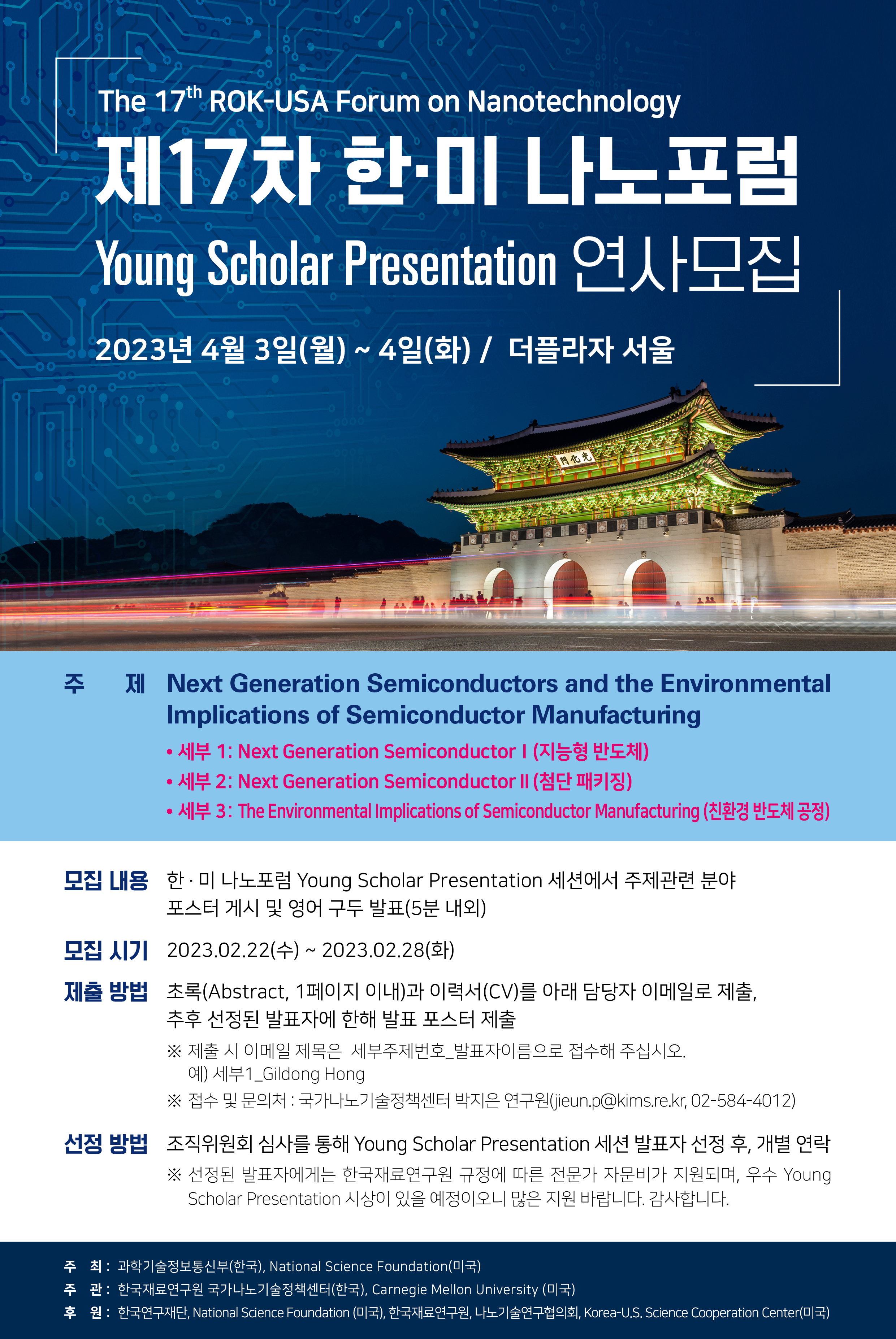 제 17차 한·미 나노포럼 Young Scholar Presentation 연사모집