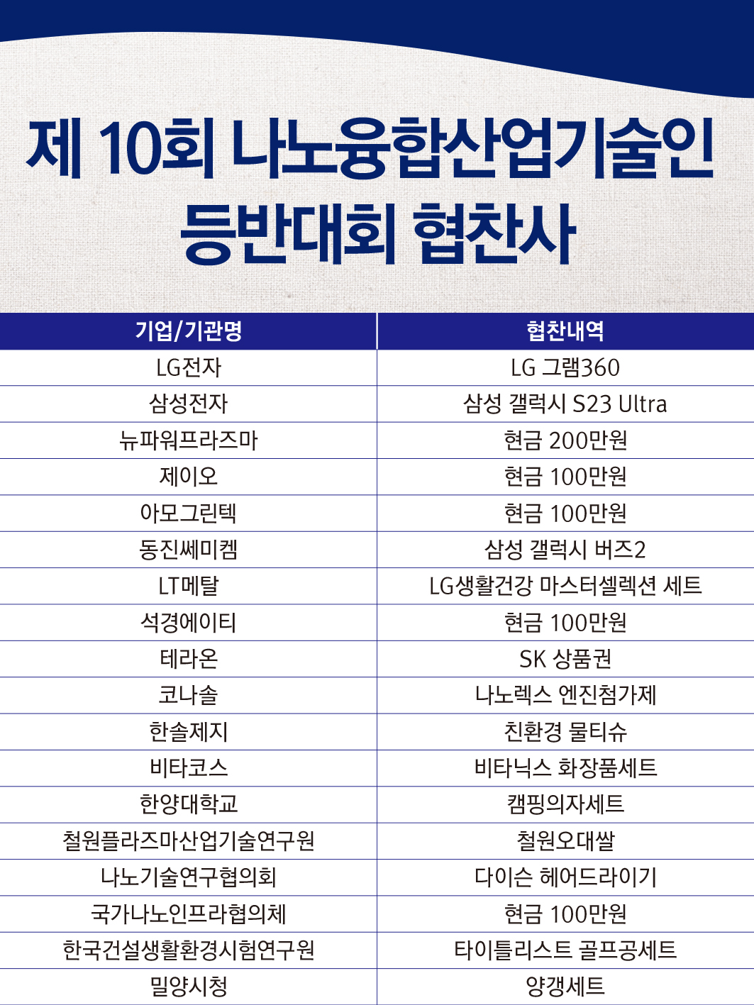 2023년 제 10회 나노융합산업기술인 등반대회 협찬사 안내