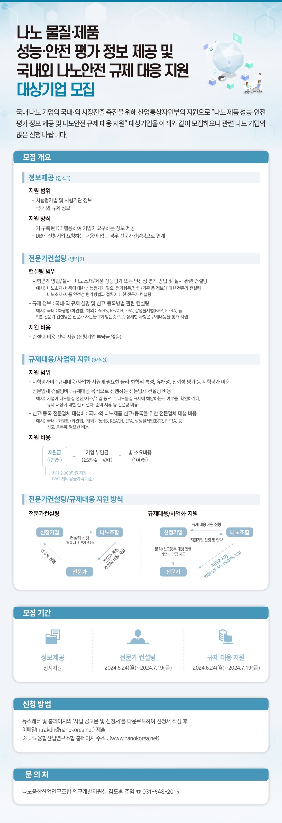 2024년도 "나노제품 성능·안전 평가 및 안전 규제 대응 지원" 대상기업 모집 (~7/19)