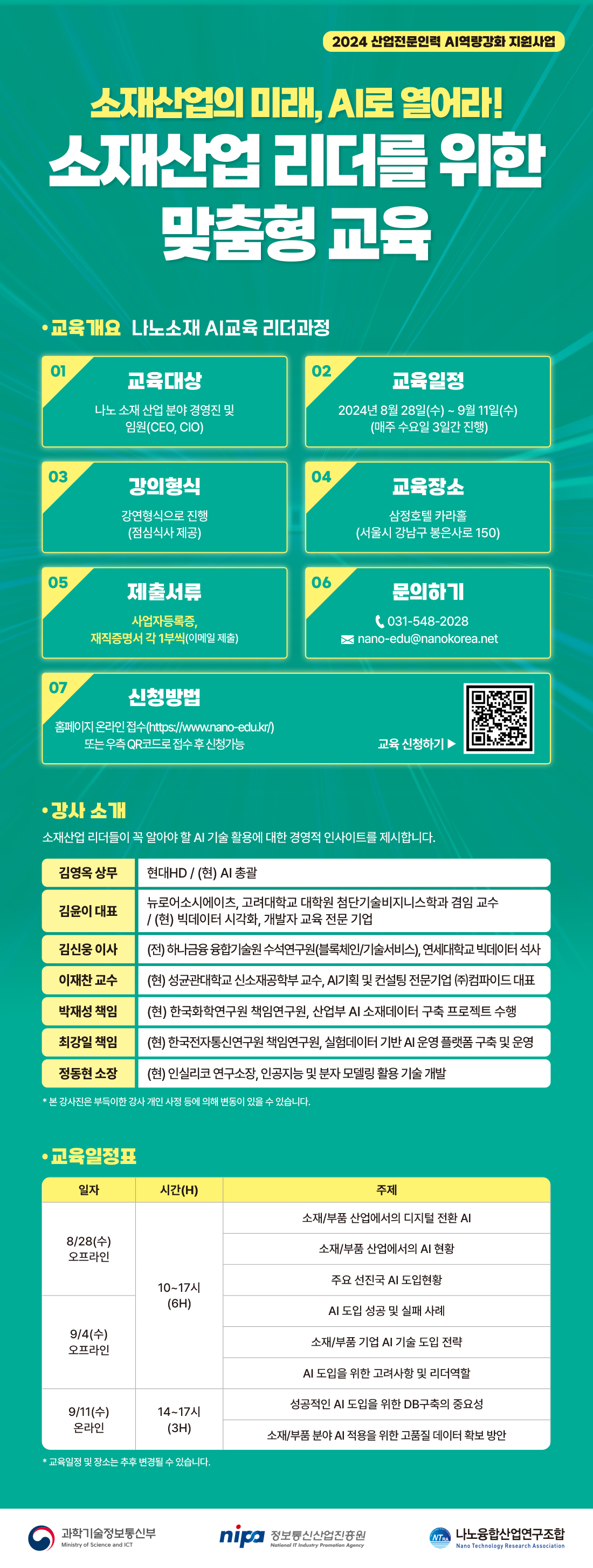 나노소재 AI교육 리더과정 3기(8~9월) 무료교육