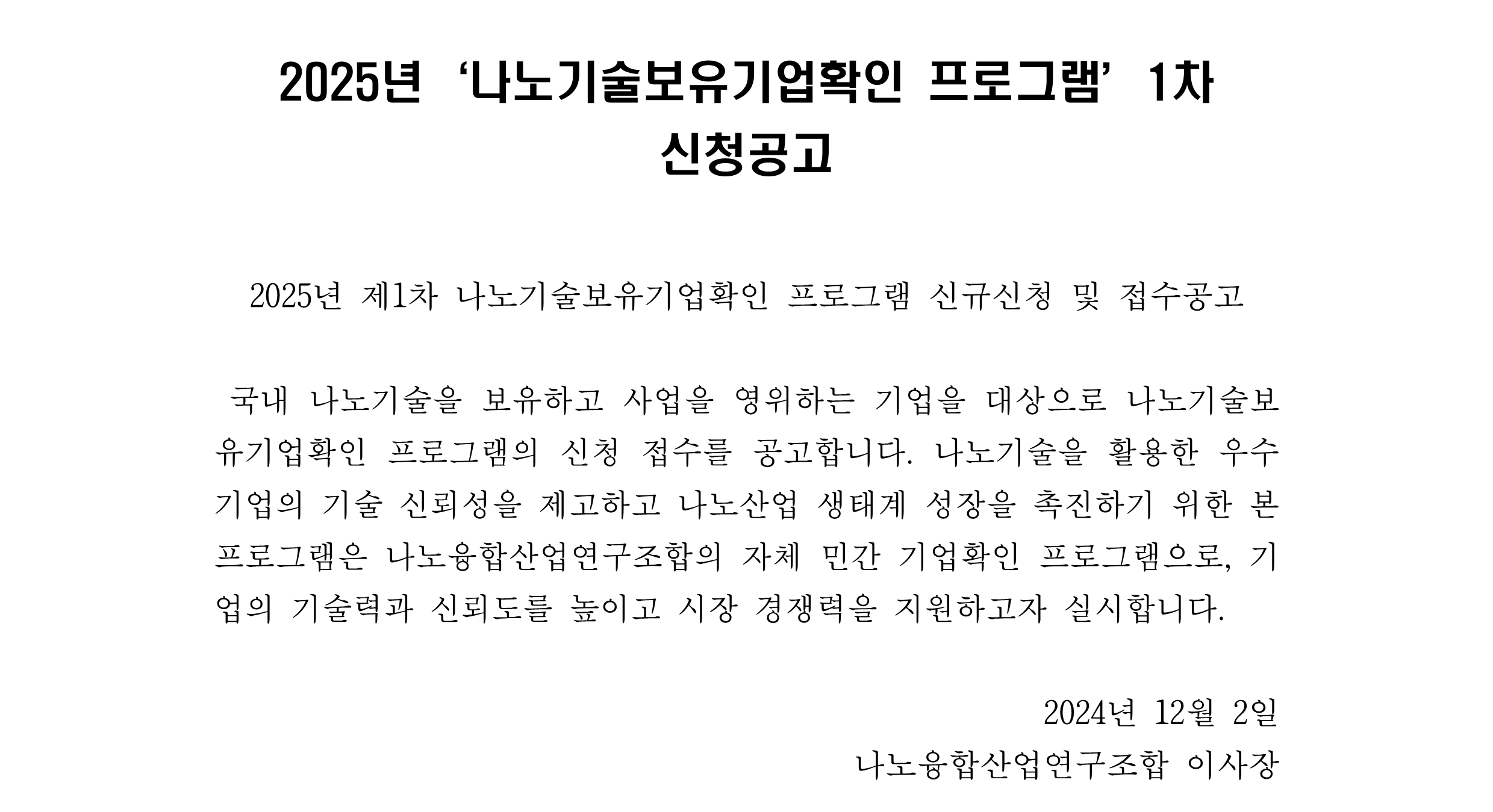 1.(공고문) 2025년 1차 나노기술보유기업확인 프로그램 공고문.jpg