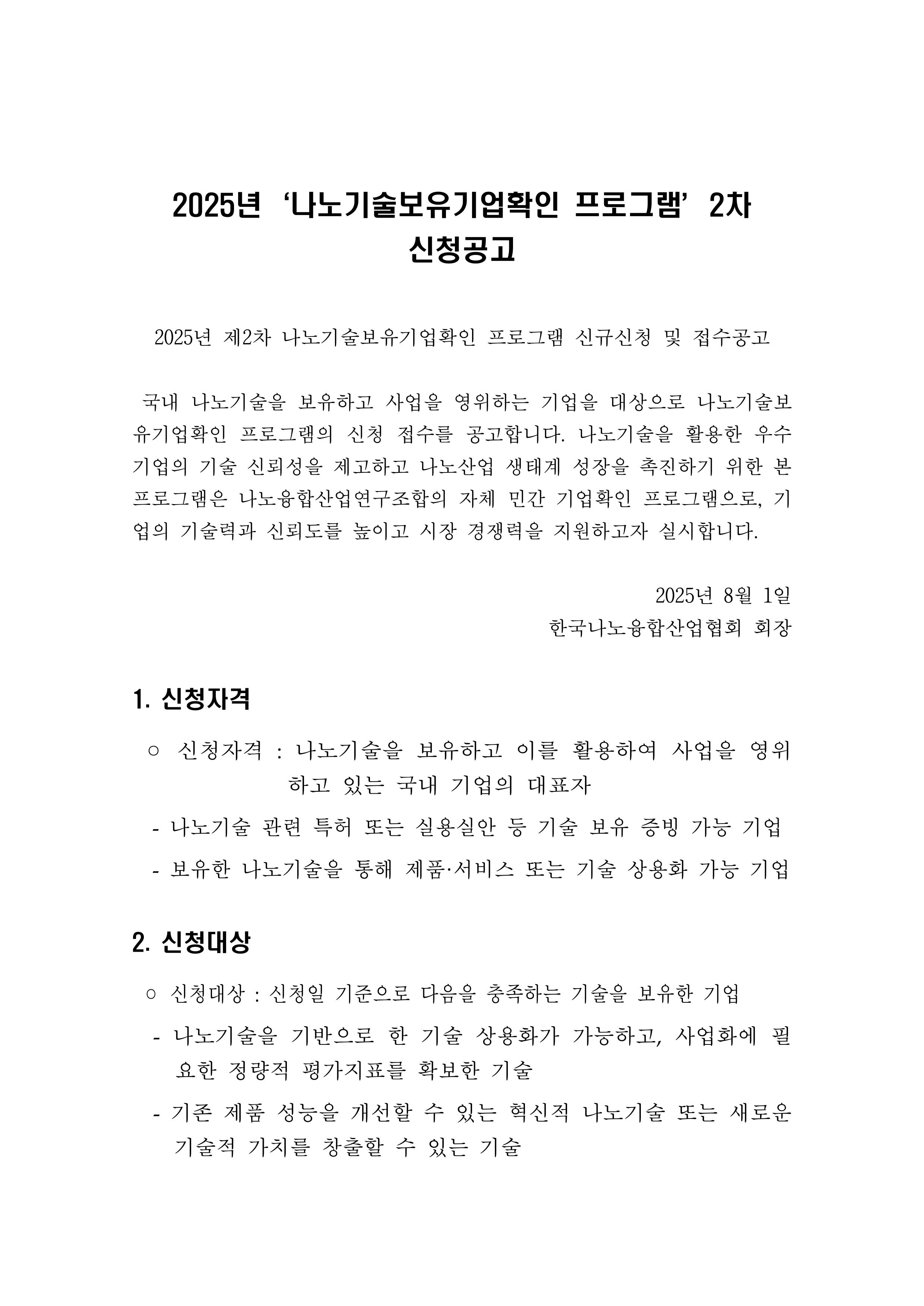 1. (공고문) 2025년 2차 나노기술보유기업확인 프로그램 신청공고.pdf