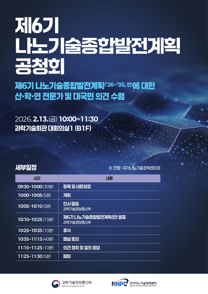 제 6기 나노기술종합발전계획 공청회 개최 안내